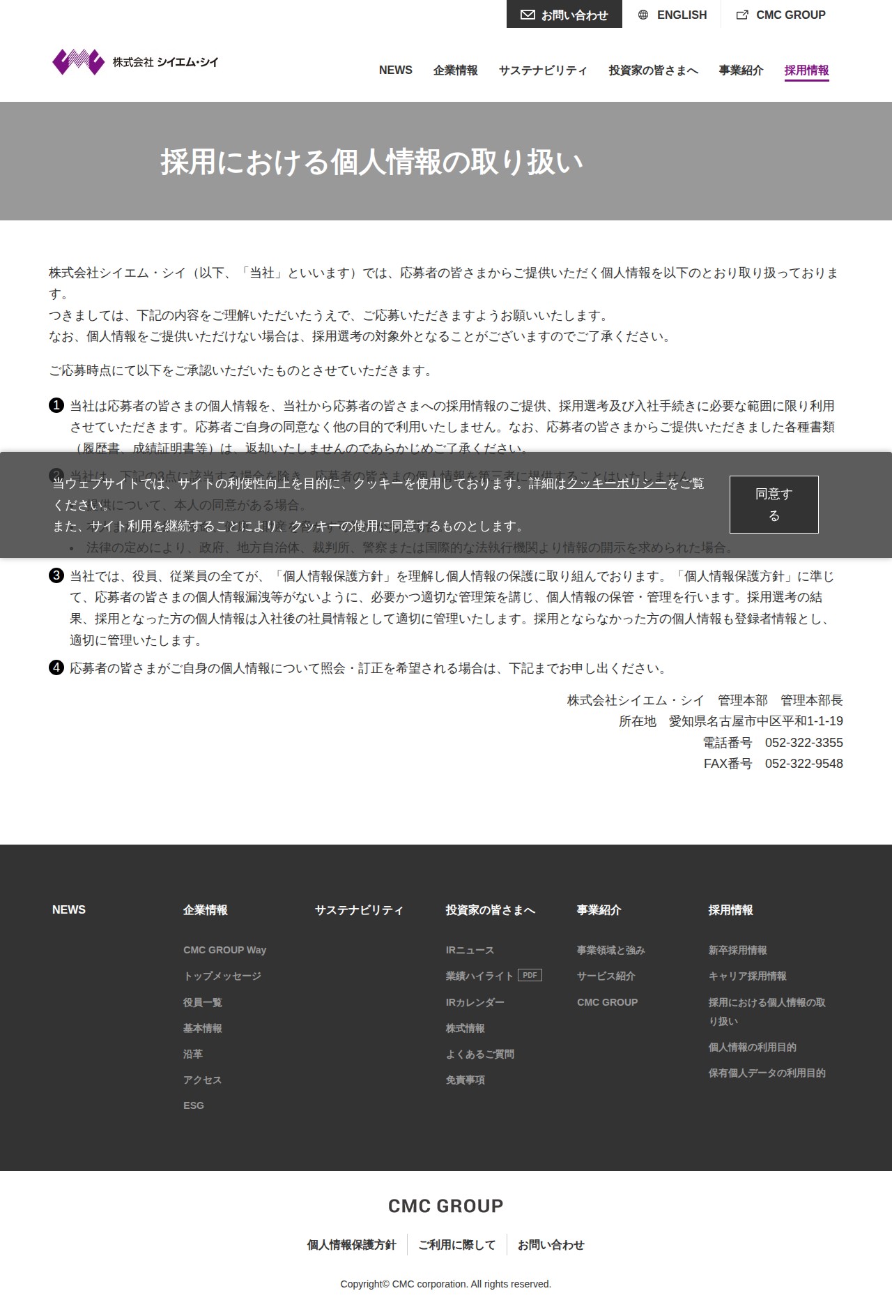 採用における個人情報の取り扱い | 採用情報 | 株式会社 シイエム・シイ(CMC)