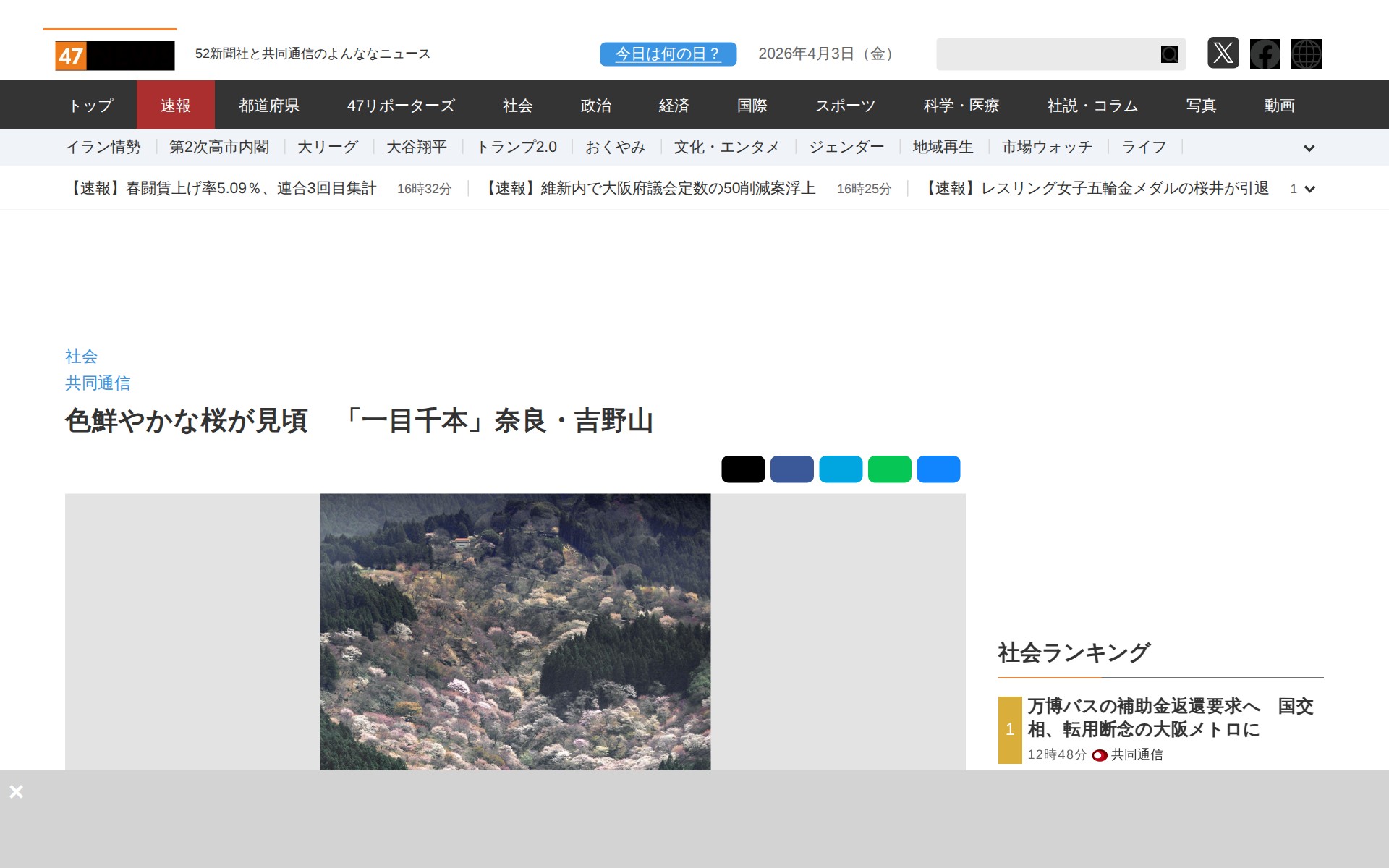 https://www.47news.jp/14092750.html色鮮やかな桜が見頃 「一目千本」奈良・吉野山|47NEWS(よんななニュース)