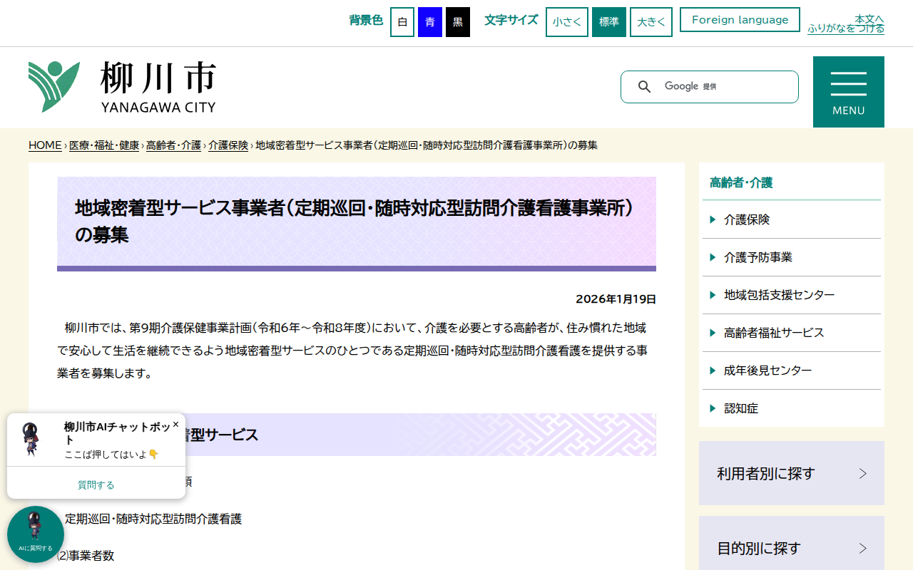 地域密着型サービス事業者(定期巡回・随時対応型訪問介護看護事業所)の募集 - 柳川市