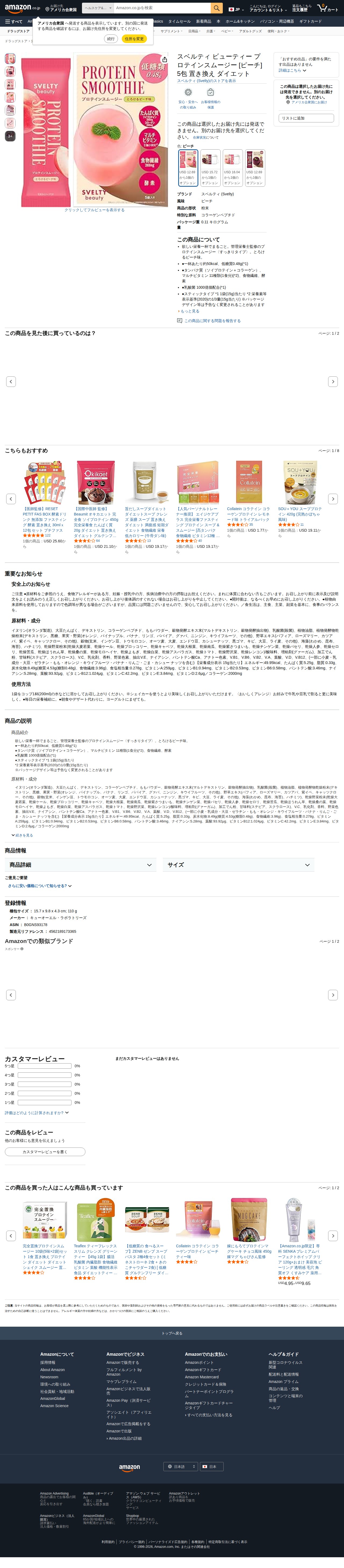 ![Amazon.co.jp: スベルティ ビューティー プロテインスムージー [ピーチ] 5包 置き換え ダイエット : ドラッグストア - Saved screenshot](https://pub-f6fa8ca7bebe4069bff3224f9a8f5334.r2.dev