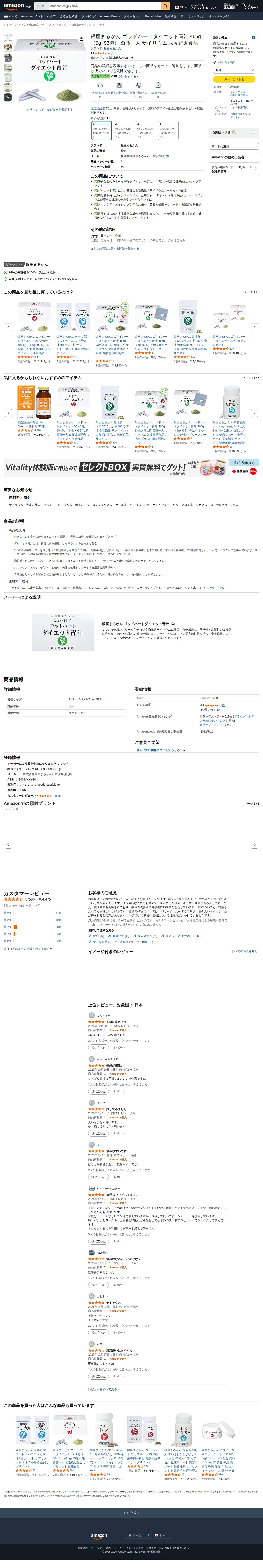 Amazon | 銀座まるかん ゴッドハートダイエット青汁 465g (5g×93包) 斎藤一人 サイリウム 栄養補助食品 | 銀座まるかん | 青汁