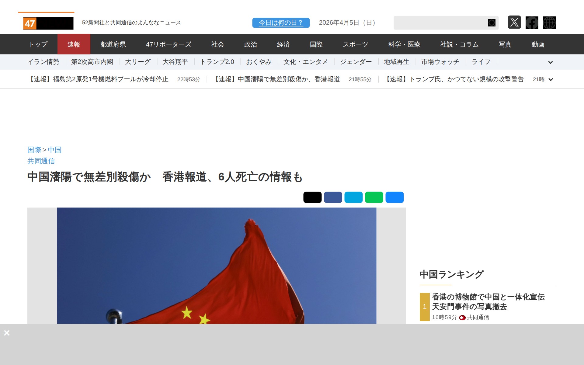 中国瀋陽で無差別殺傷か 香港報道、6人死亡の情報も|47NEWS(よんななニュース)