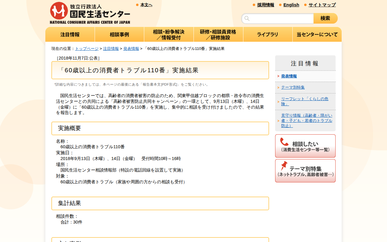 「60歳以上の消費者トラブル110番」実施結果(発表情報)_国民生活センター