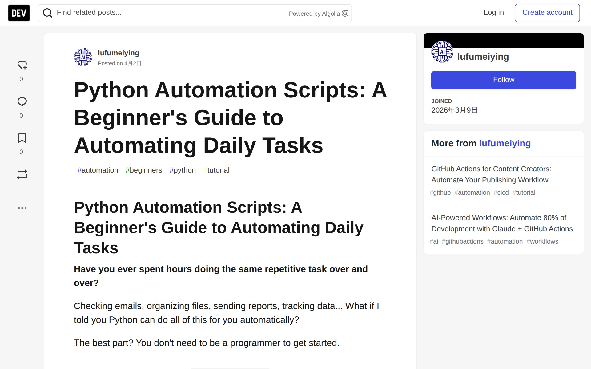 Python Automation Scripts: A Beginner's Guide to Automating Daily Tasks - DEV Community - Saved screenshot