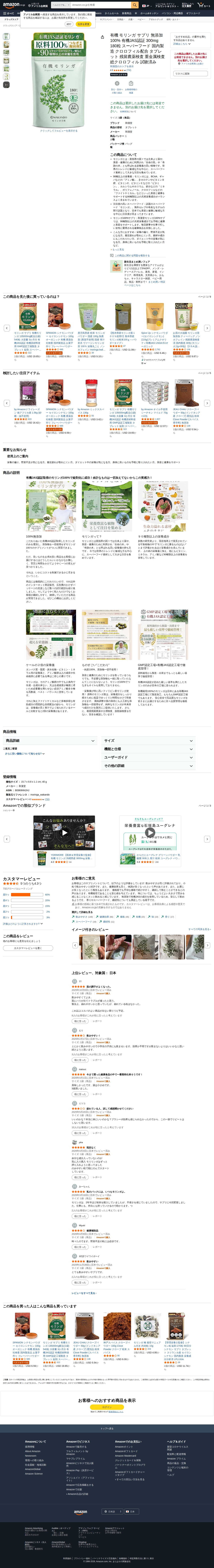 Amazon | 和漢堂 有機 モリンガ サプリ 無添加 100% 有機JAS認証 300mg 180粒 スーパーフード 国内製造 クロロフィル配合 タブレット 残留農薬検査 重金属検査 総クロロフィル 試験済み | 和漢堂 | クロロフィル - Saved screenshot