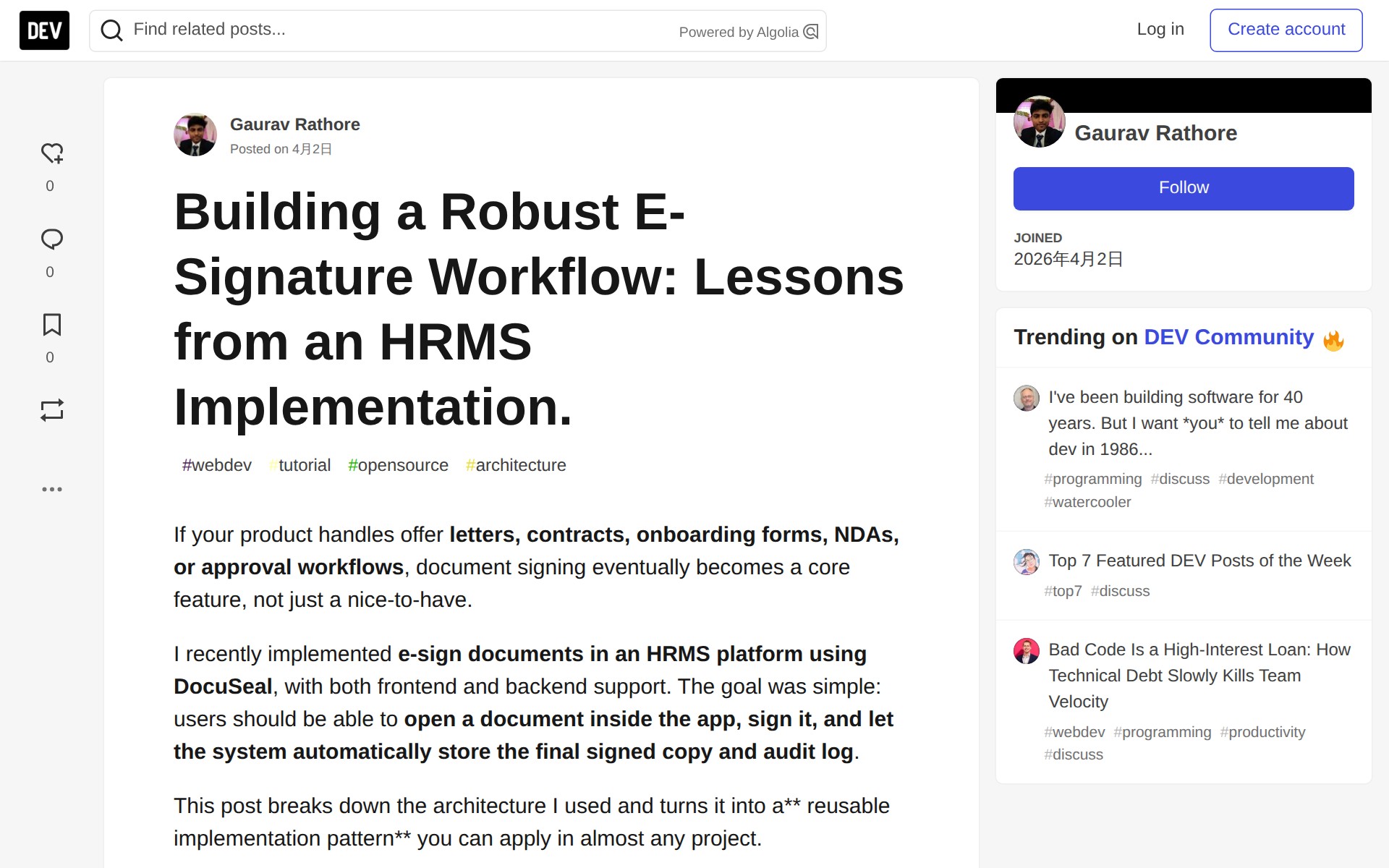 Building a Robust E-Signature Workflow: Lessons from an HRMS Implementation. - DEV Community