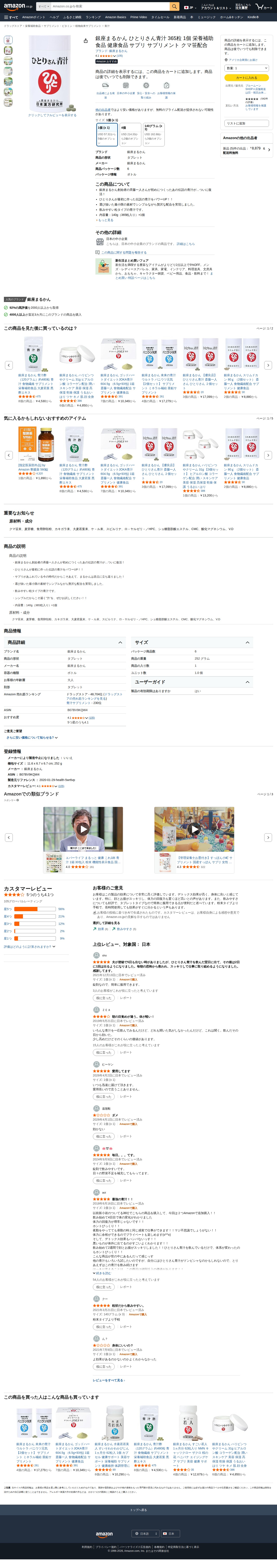 Amazon | 銀座まるかん ひとりさん青汁 365粒 1個 栄養補助食品 健康食品 サプリ サプリメント クマ笹配合 | 銀座まるかん | 青汁