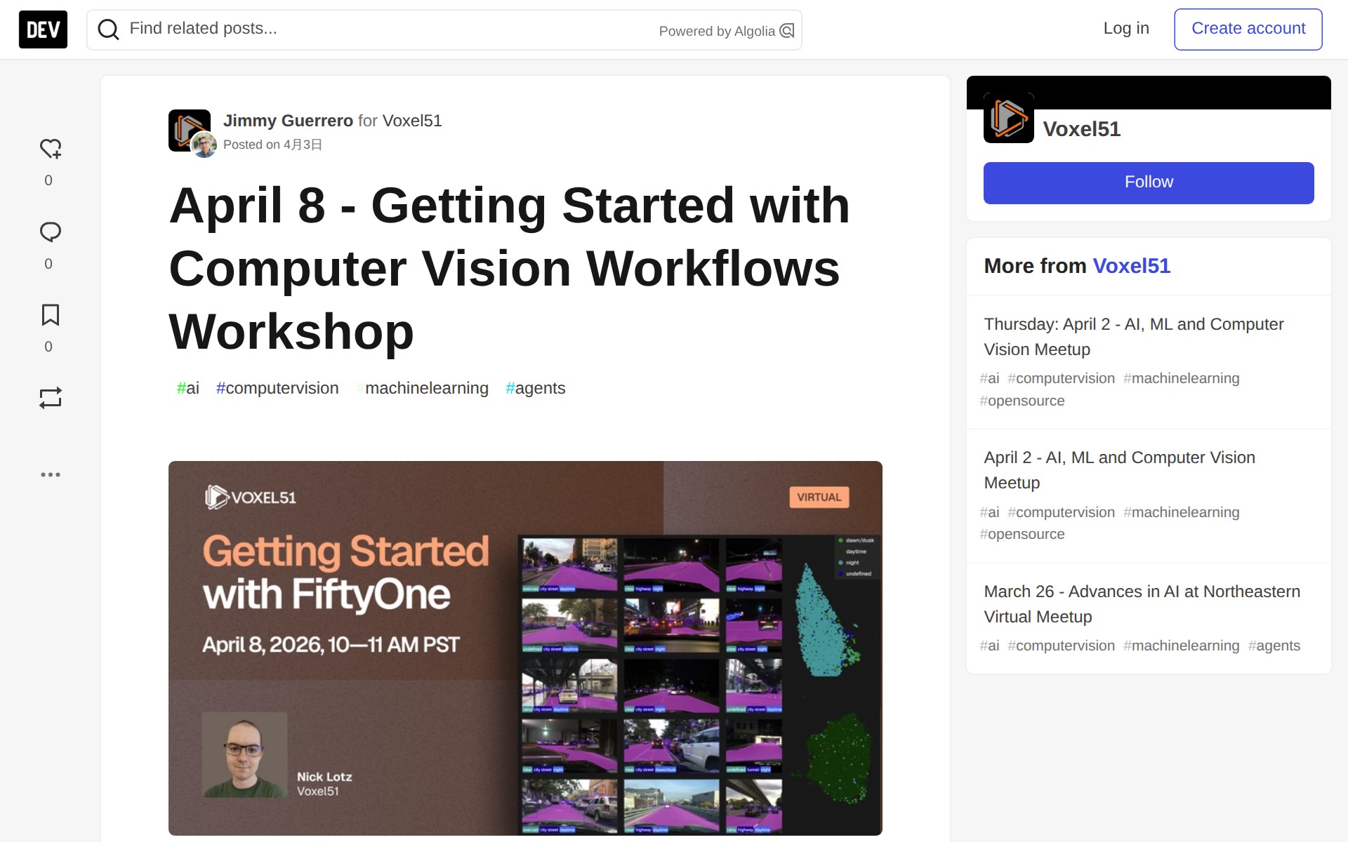 April 8 - Getting Started with Computer Vision Workflows Workshop - DEV Community