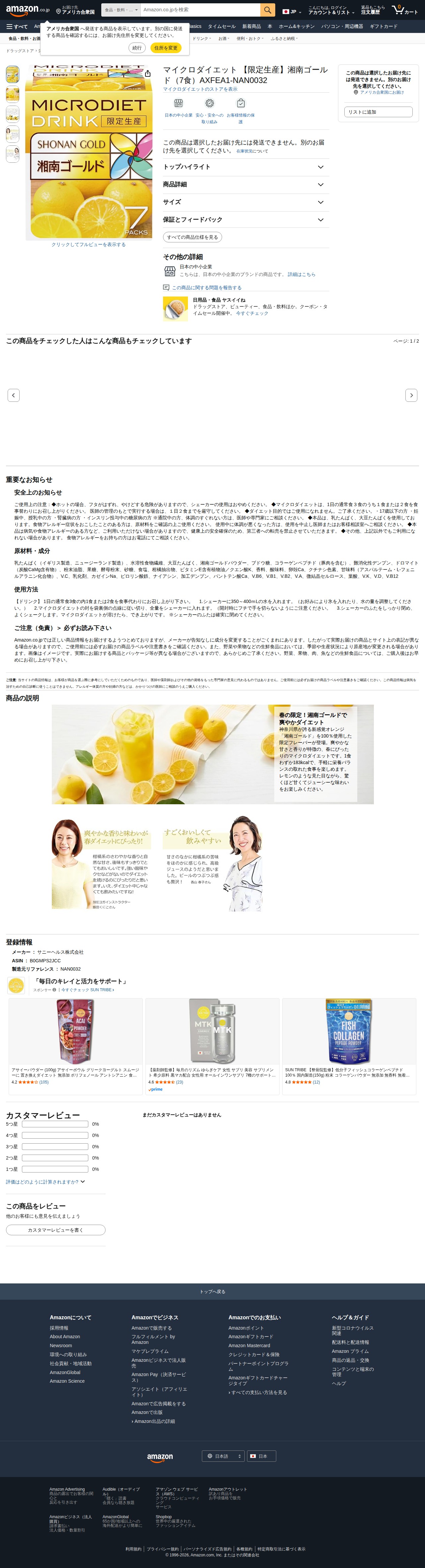 Amazon.co.jp: マイクロダイエット 【限定生産】湘南ゴールド(7食)AXFEA1-NAN0032 : ドラッグストア - Saved screenshot
