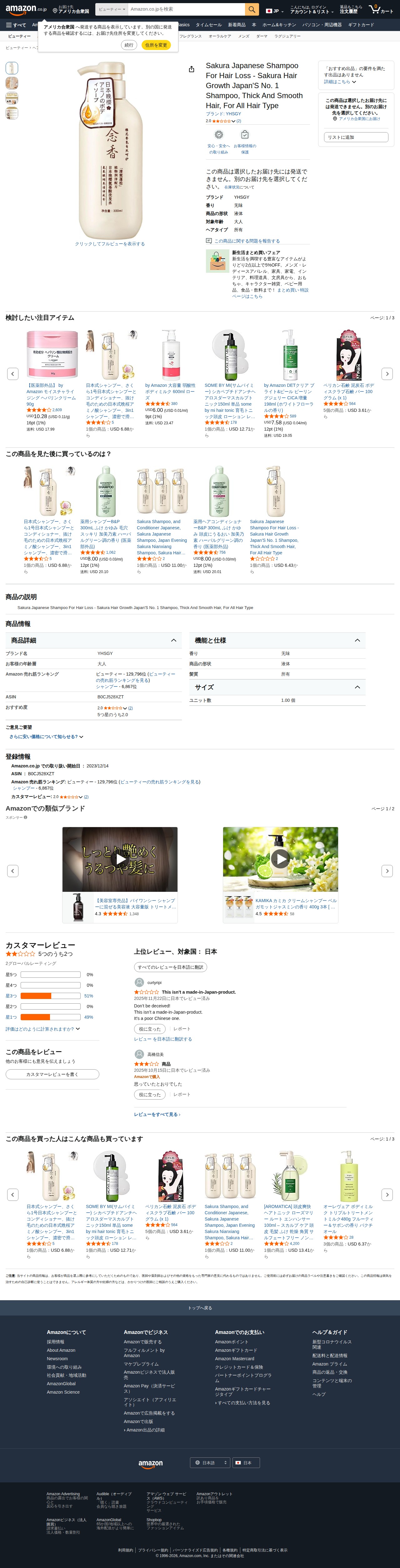 Amazon | Sakura Japanese Shampoo For Hair Loss - Sakura Hair Growth Japan'S No. 1 Shampoo, Thick And Smooth Hair, For All Hair Type | YHSGY | シャンプー 通販