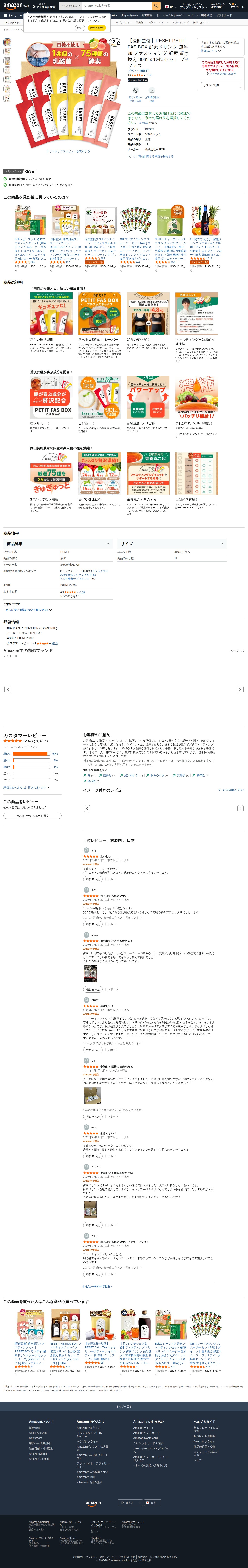 Amazon | 【医師監修】RESET PETIT FAS BOX 酵素ドリンク 無添加 ファスティング 酵素 置き換え 30mlx12包 セット プチファス | RESET | マルチ酵素 - Saved screenshot
