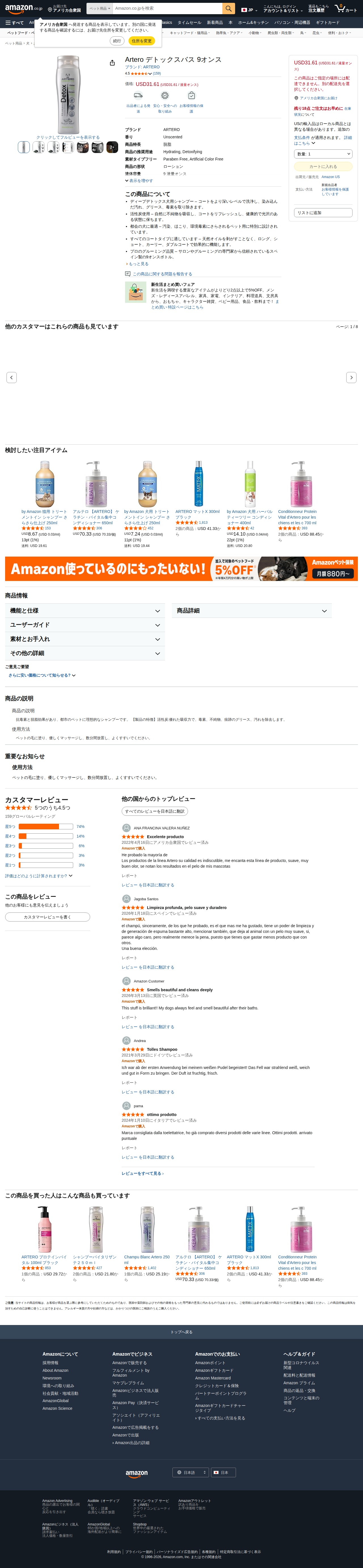 Amazon | Artero デトックスバス 9オンス | ARTERO | シャンプー 通販