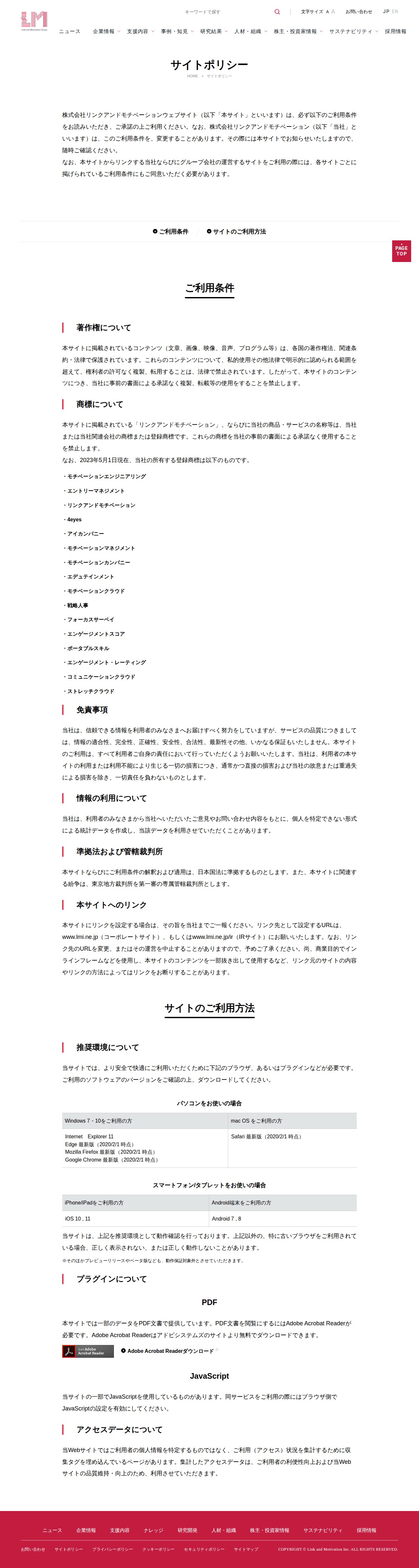 サイトポリシー | Link and Motivation Inc. 株式会社リンクアンドモチベーション - Saved screenshot