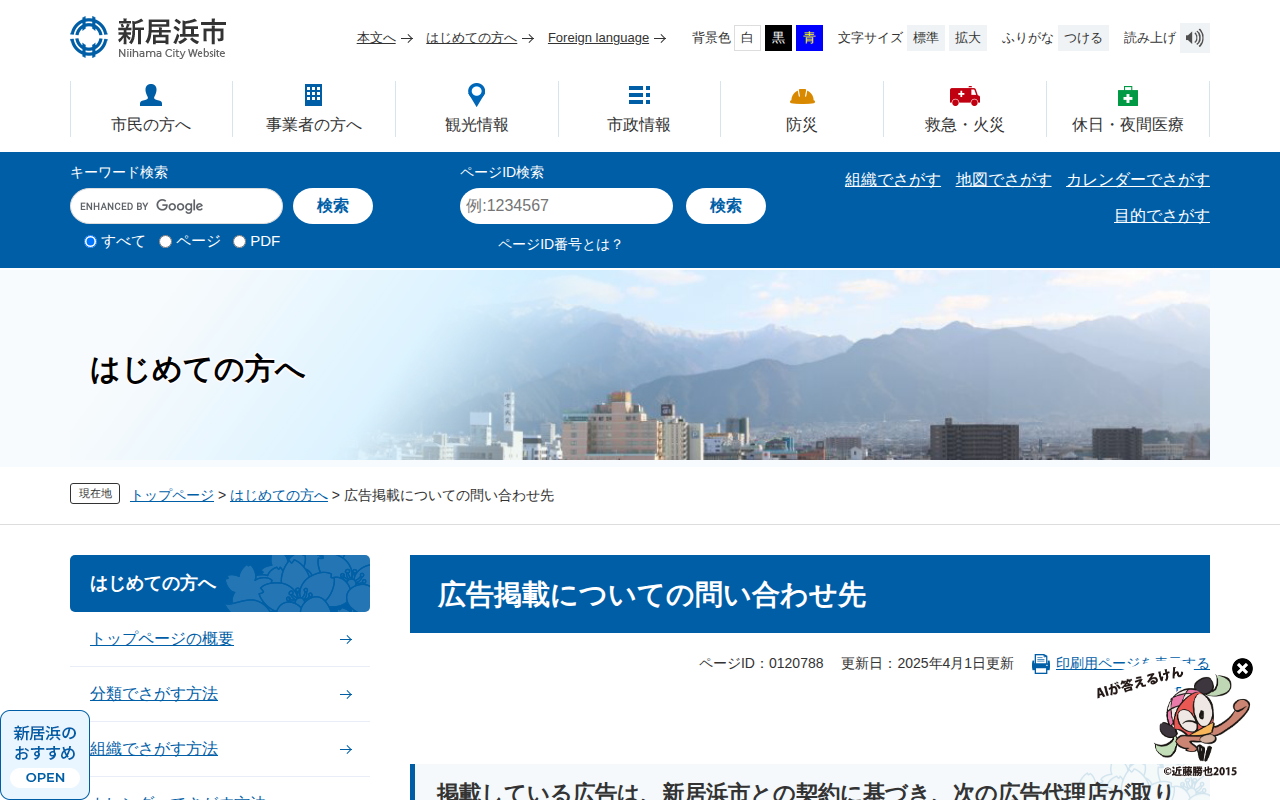 広告掲載についての問い合わせ先 - 愛媛県新居浜市ホームページ|四国屈指の臨海工業都市