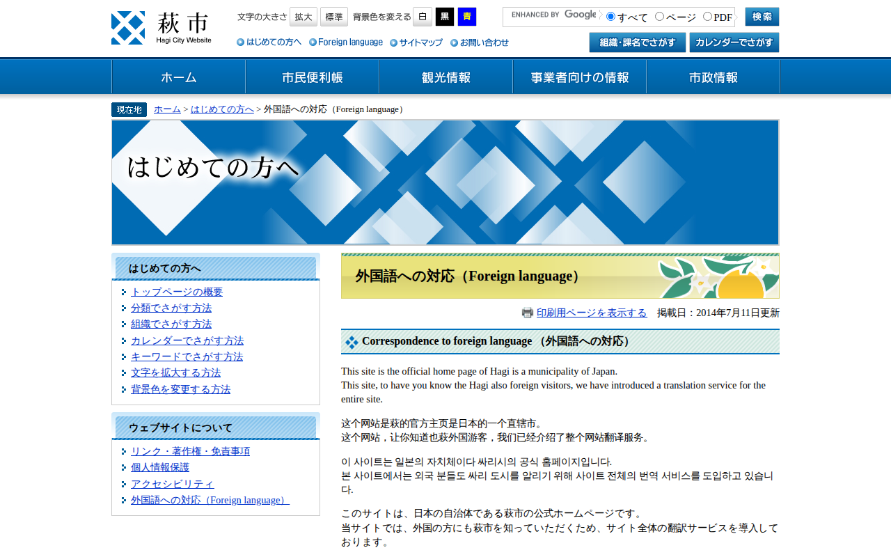 外国語への対応(Foreign language) - 萩市ホームページ