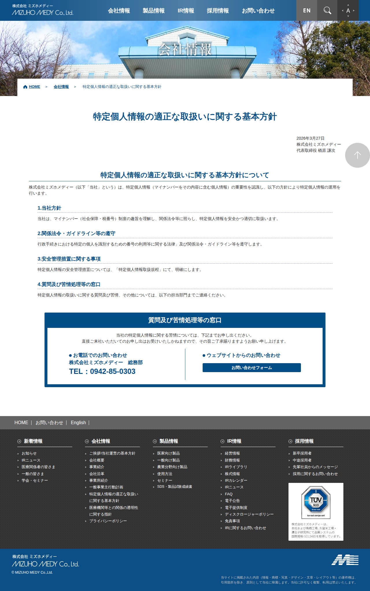 特定個人情報の適正な取扱いに関する基本方針 | 株式会社ミズホメディー - Saved screenshot