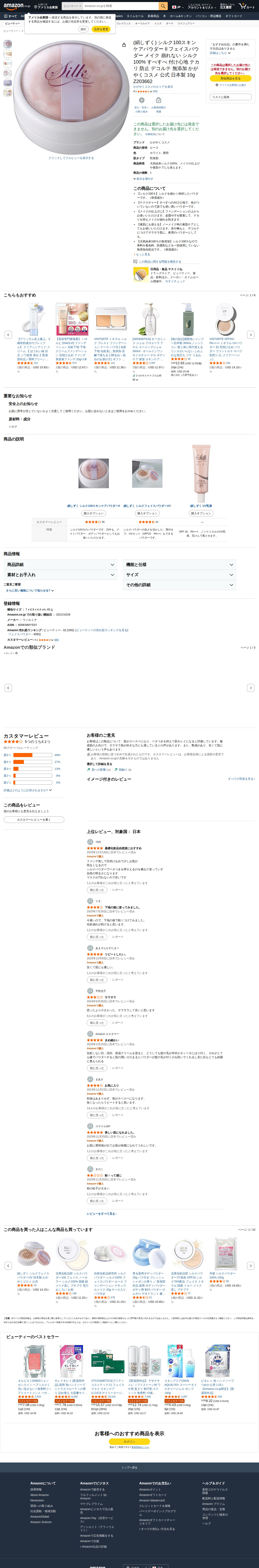 Amazon | (絹しずく) シルク100スキンケアパウダー II フェイスパウダー メイク 崩れない シルク 100% すべすべ 付け心地 テカリ 防止 デコルテ 無添加 かがやくコスメ 公式 日本製 10g Z203662 | かがやくコスメ | フェイスパウダー 通販