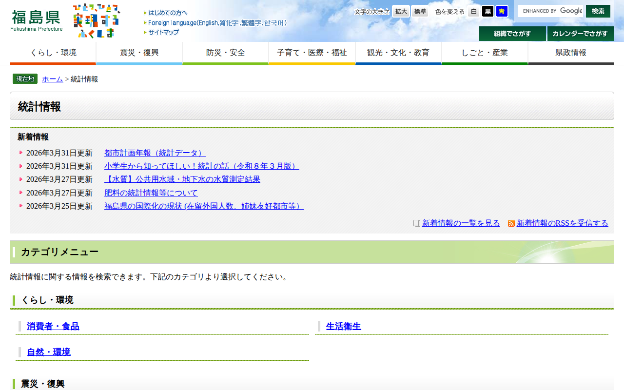統計情報 - 福島県ホームページ