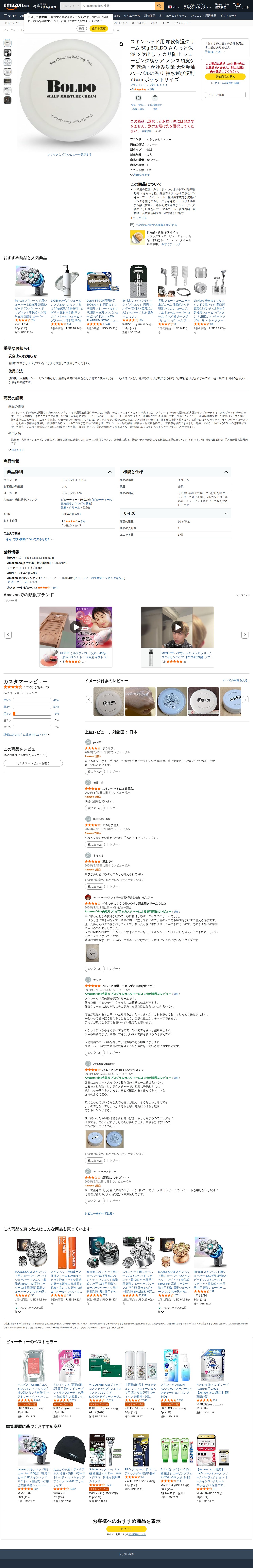 Amazon | スキンヘッド用 頭皮保湿クリーム 50g BOLDO さらっと保湿 ツヤ出し テカリ防止 シェービング後ケア メンズ頭皮ケア 乾燥・かゆみ対策 天然精油ハーバルの香り 持ち運び便利 7.5cm ポケットサイズ | くらし安心Labo | 乳液・クリーム 通販 - Saved screenshot