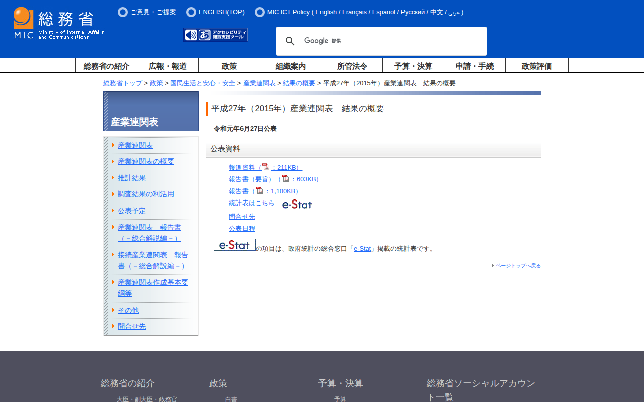 https://www.soumu.go.jp/toukei_toukatsu/data/io/2015/io15_00001.htmlApril 8, 2026 at 09:03 AM JST•The archive page, viewer, and downloads use this saved version.