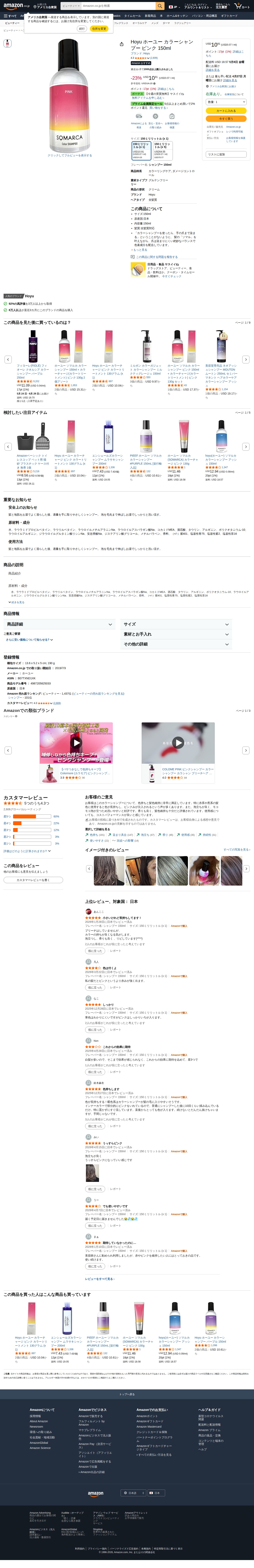 Amazon | Hoyu ホーユー カラーシャンプー ピンク 150ml | Hoyu | シャンプー 通販 - Saved screenshot