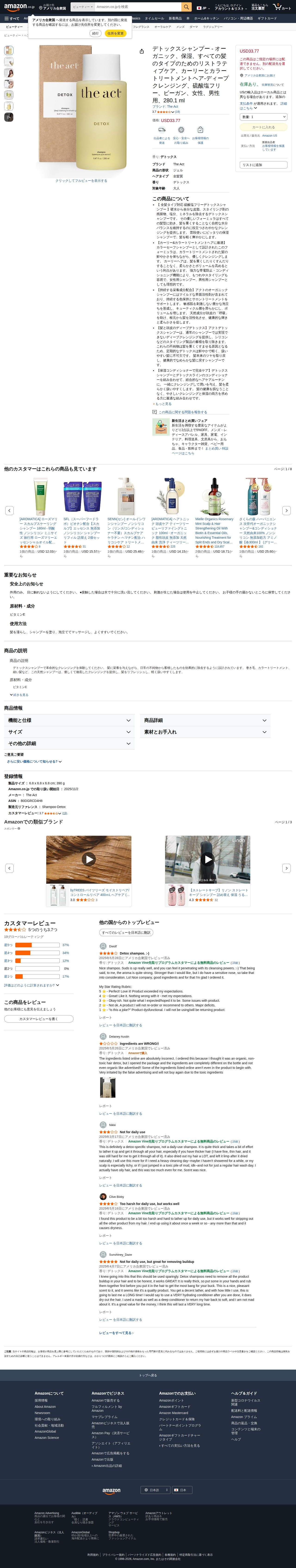 Amazon | デトックスシャンプー - オーガニック、保湿、すべての髪のタイプのためのリストラティブケア、カーリーとカラートリートメントヘア-ディープクレンジング、硫酸塩フリー、ビーガン、女性、男性用、280.1 ml | The Act | シャンプー 通販