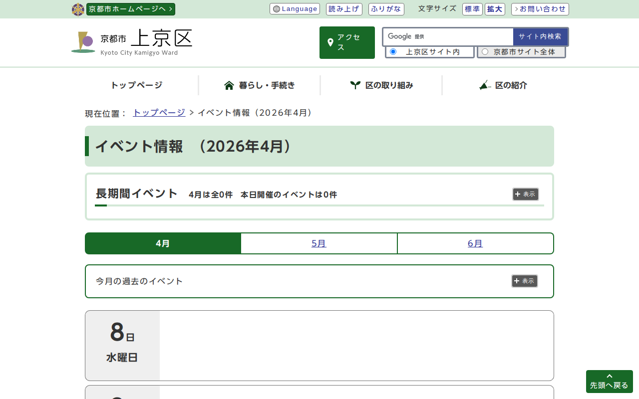 https://www.city.kyoto.lg.jp/kamigyo/event1/curr.htmlApril 8, 2026 at 07:00 PM JST•The archive page, viewer, and downloads use this saved version.