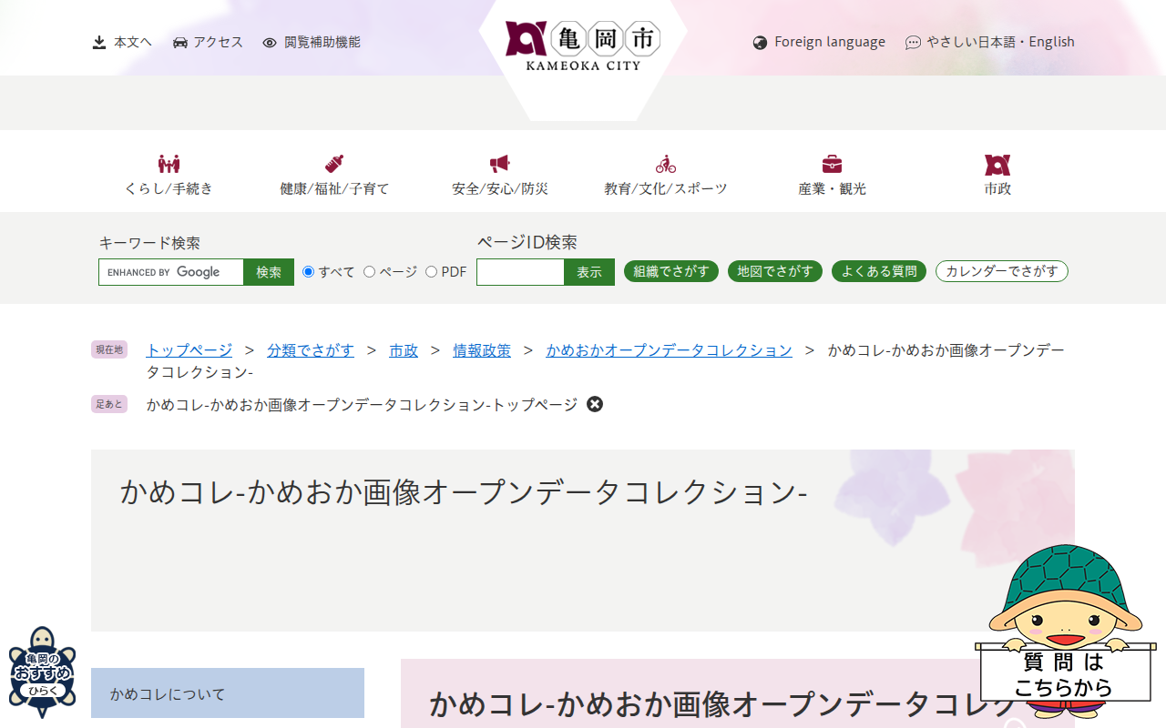 Original URLhttps://www.city.kameoka.kyoto.jp/site/kamecolle