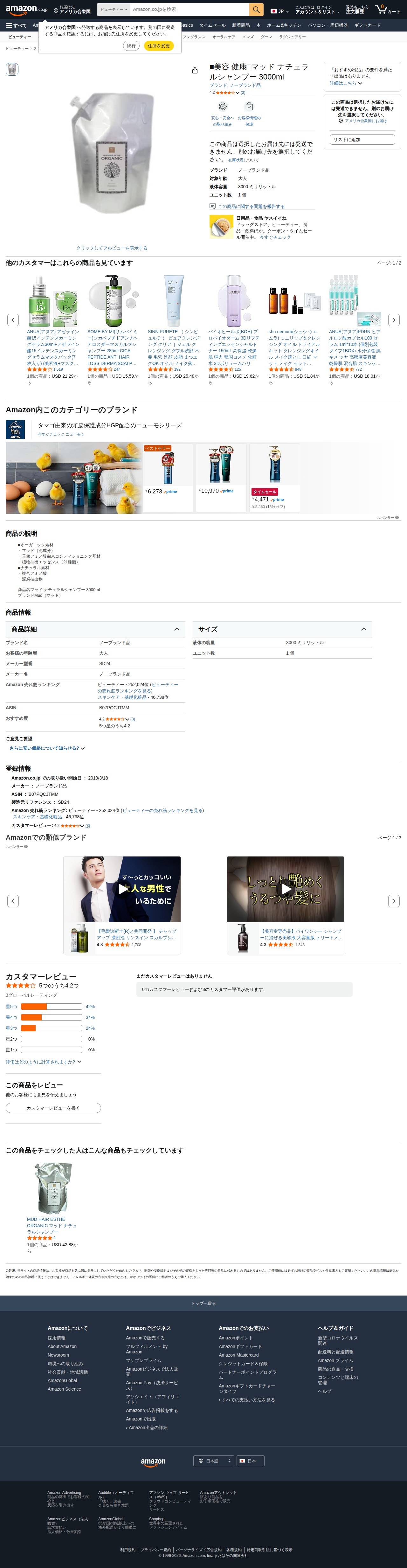 Amazon.co.jp: ■美容 健康□マッド ナチュラルシャンプー 3000ml : ビューティー - Saved screenshot