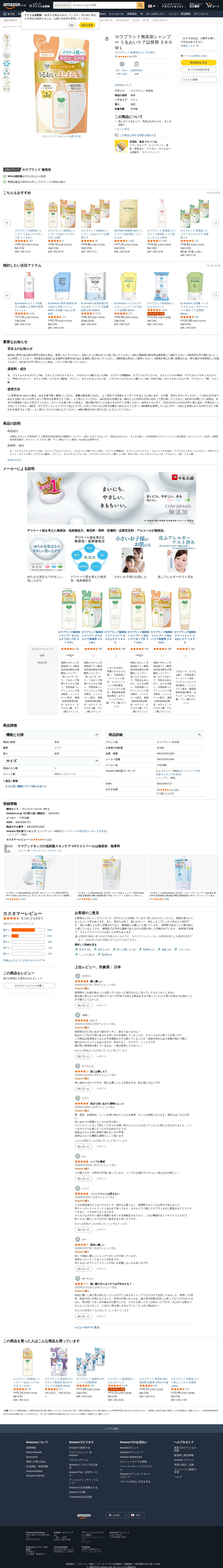 Amazon.co.jp: カウブランド無添加シャンプー うるおいケア詰替用 360ML : ビューティー