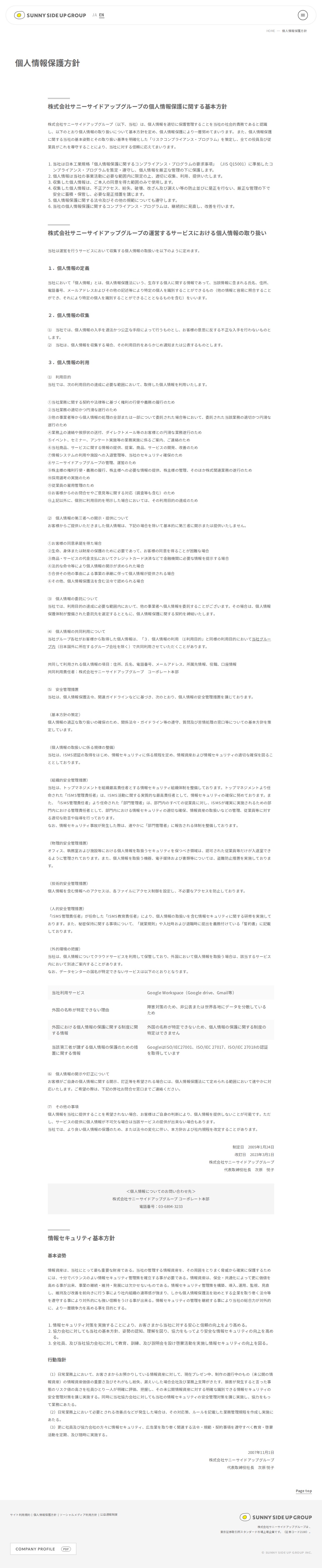 個人情報保護方針 « 株式会社サニーサイドアップグループ