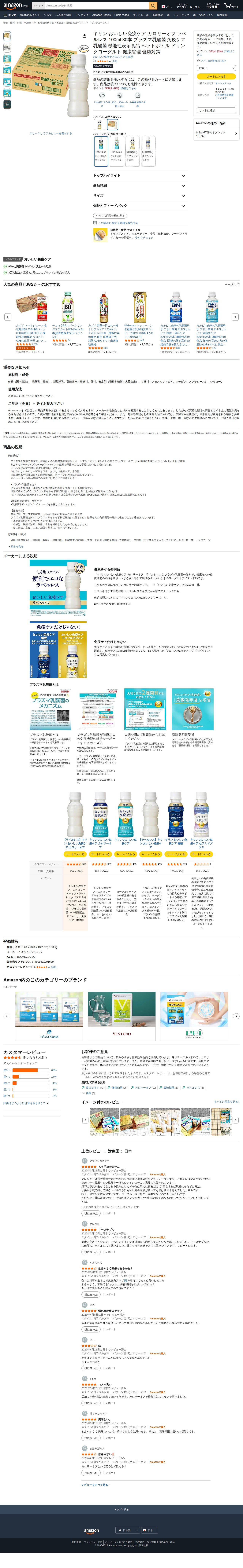 キリン おいしい免疫ケア カロリーオフ ペットボトル 100ml - Saved screenshot