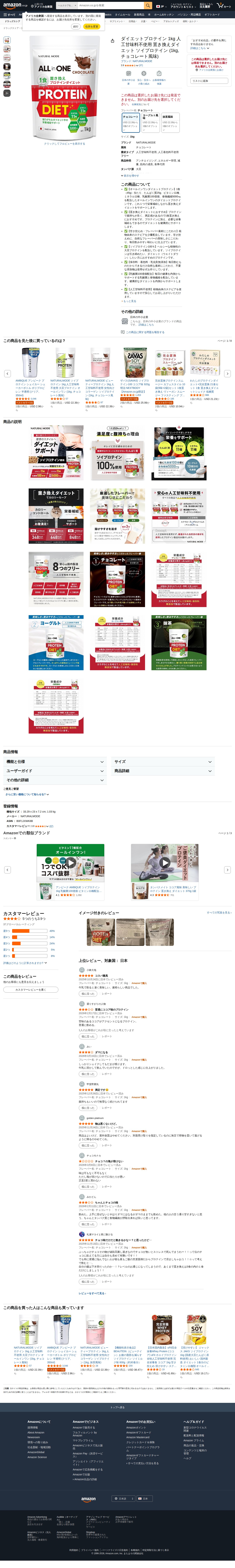 Amazon | NATURALMODE ダイエットプロテイン 1kg 人工甘味料不使用 置き換えダイエット ソイプロテイン (1kg, チョコレート風味) | NATURALMODE | ダイエットシェイク - Saved screenshot