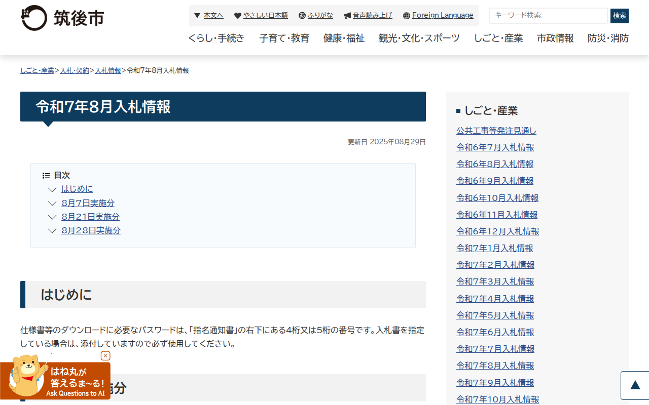 令和7年8月入札情報|筑後市公式ホームページ