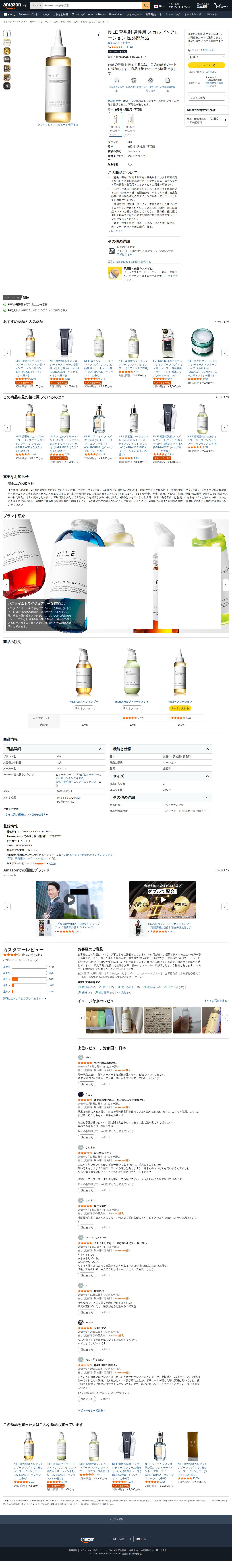 This page presents the NILE Men's Hair Growth Tonic Scalp Lotion, a quasi-drug formulation containing active ingredients for hair growth and maintenance. It helps reduce dandruff and itching while providing a refreshing sensation to the scalp. The product is applied directly to the scalp after shampooing and blow-drying, followed by gentle massage. The item has a 4-star rating from 4,723 reviews and has sold over 2,000 units in the past month. It is offered by Nile Store with Prime shipping availability.