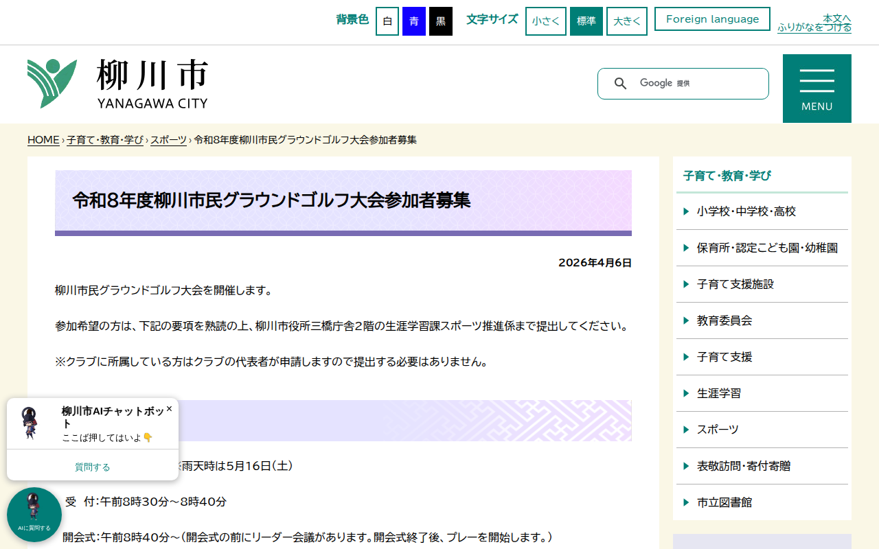 令和8年度柳川市民グラウンドゴルフ大会参加者募集 - 柳川市 - Saved screenshot