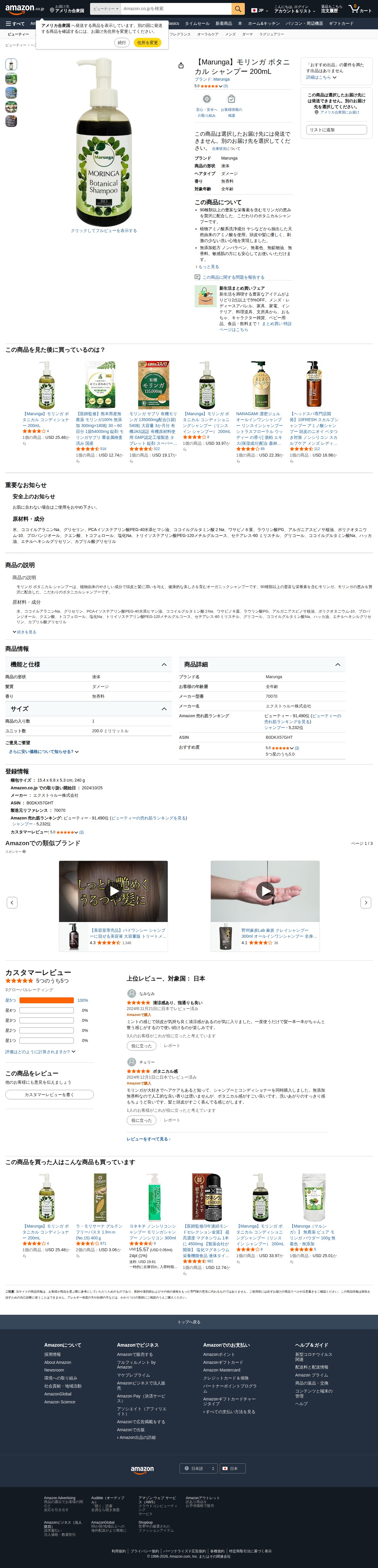 Amazon | 【Marunga】モリンガ ボタニカル シャンプー 200mL | Marunga | シャンプー 通販