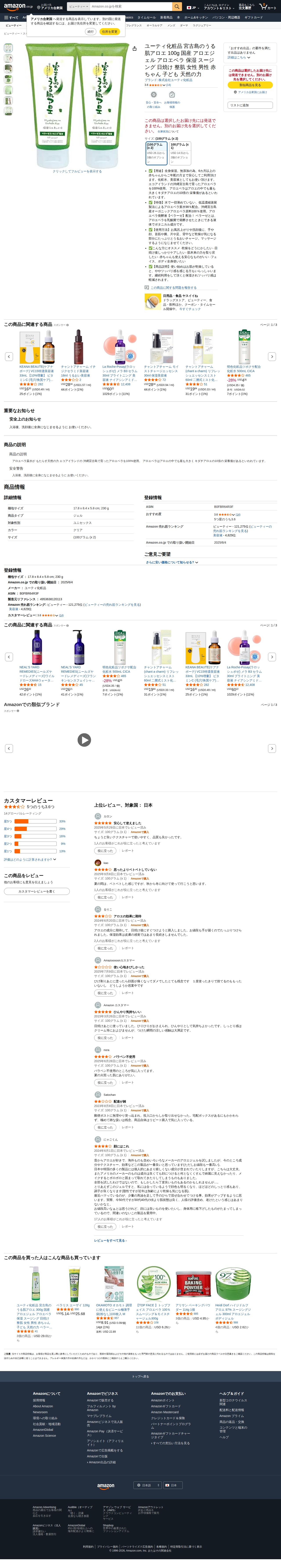 Amazon.co.jp: ユーティ化粧品 宮古島のうる肌アロエ 100g 国産 アロエジェル アロエベラ 保湿 スージング 日焼け 整肌 女性 男性 赤ちゃん 子ども 天然の力 : ビューティー - Saved screenshot