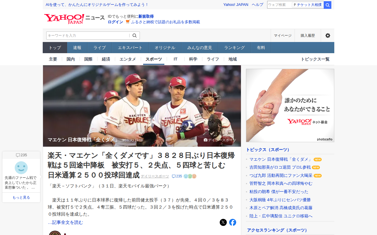 マエケン 日本復帰戦「全くダメ」 - Yahoo!ニュース