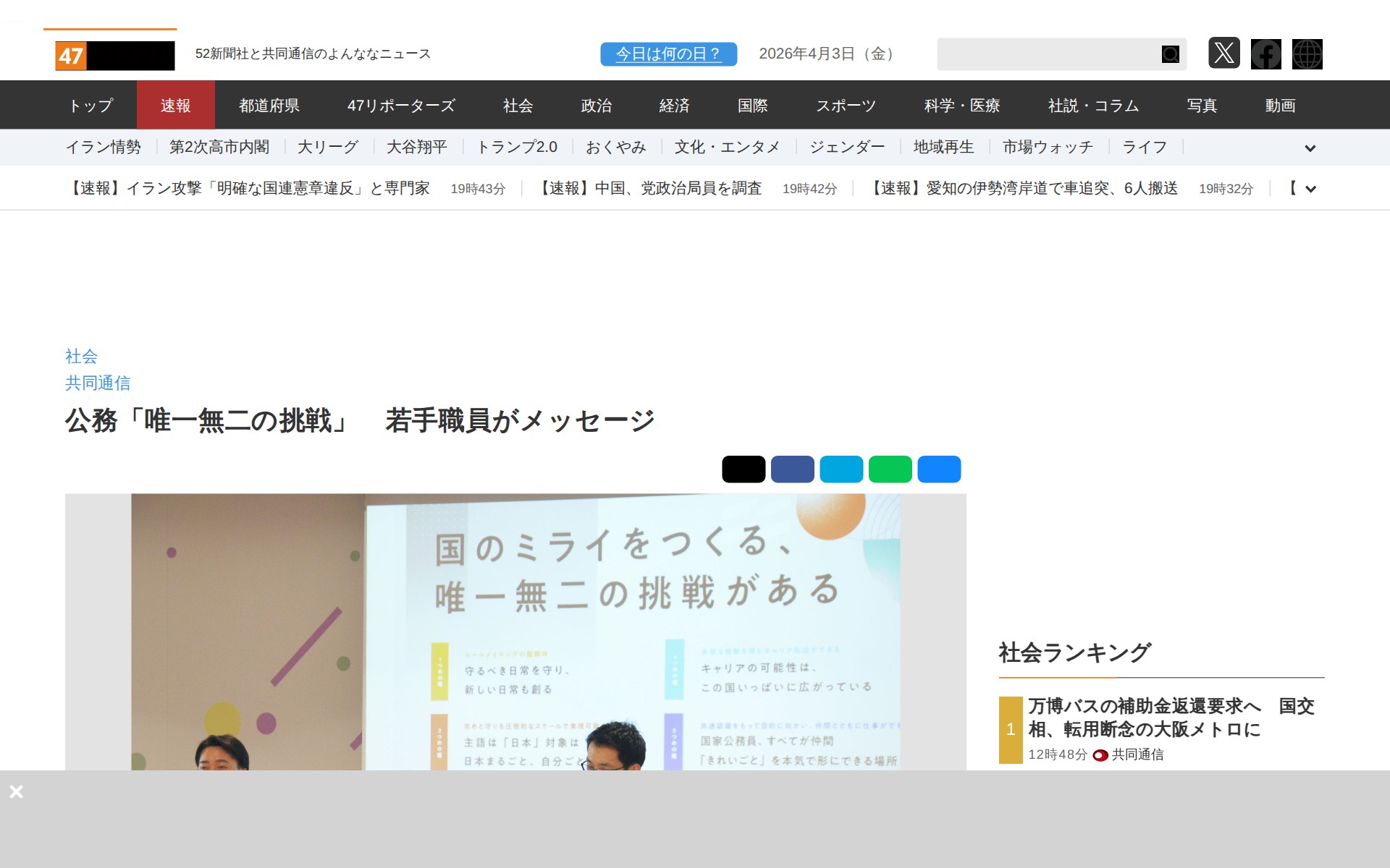 公務「唯一無二の挑戦」 若手職員がメッセージ|47NEWS(よんななニュース)