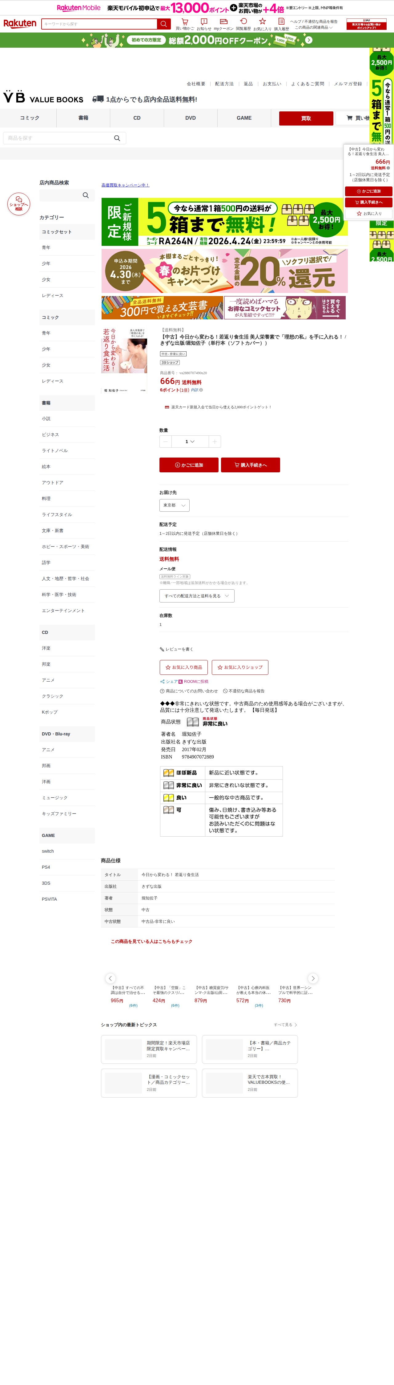 【楽天市場】【中古】今日から変わる!若返り食生活 美人栄養素で「理想の私」を手に入れる! /きずな出版/堀知佐子(単行本(ソフトカバー)):VALUE BOOKS