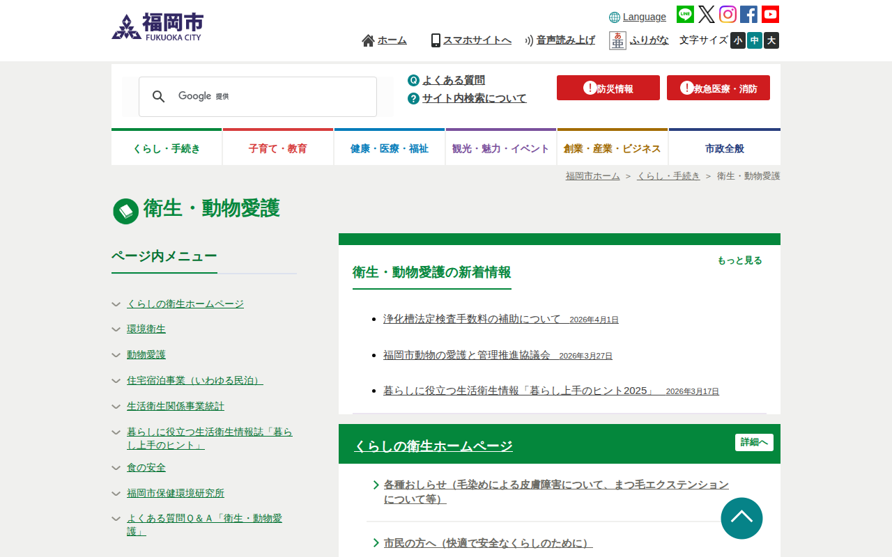 http://www.city.fukuoka.lg.jp/lifeinformation/eisei-doubutsuaigo/index.htmlApril 10, 2026 at 12:54 PM JST•The archive page, viewer, and downloads use this saved version.