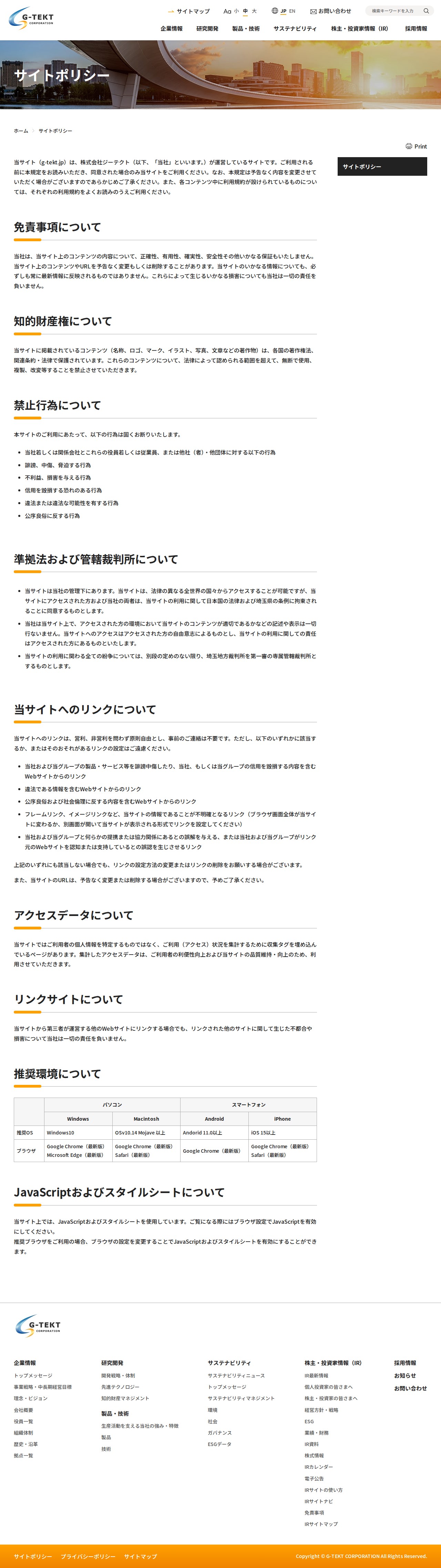 サイトポリシー | 株式会社ジーテクト