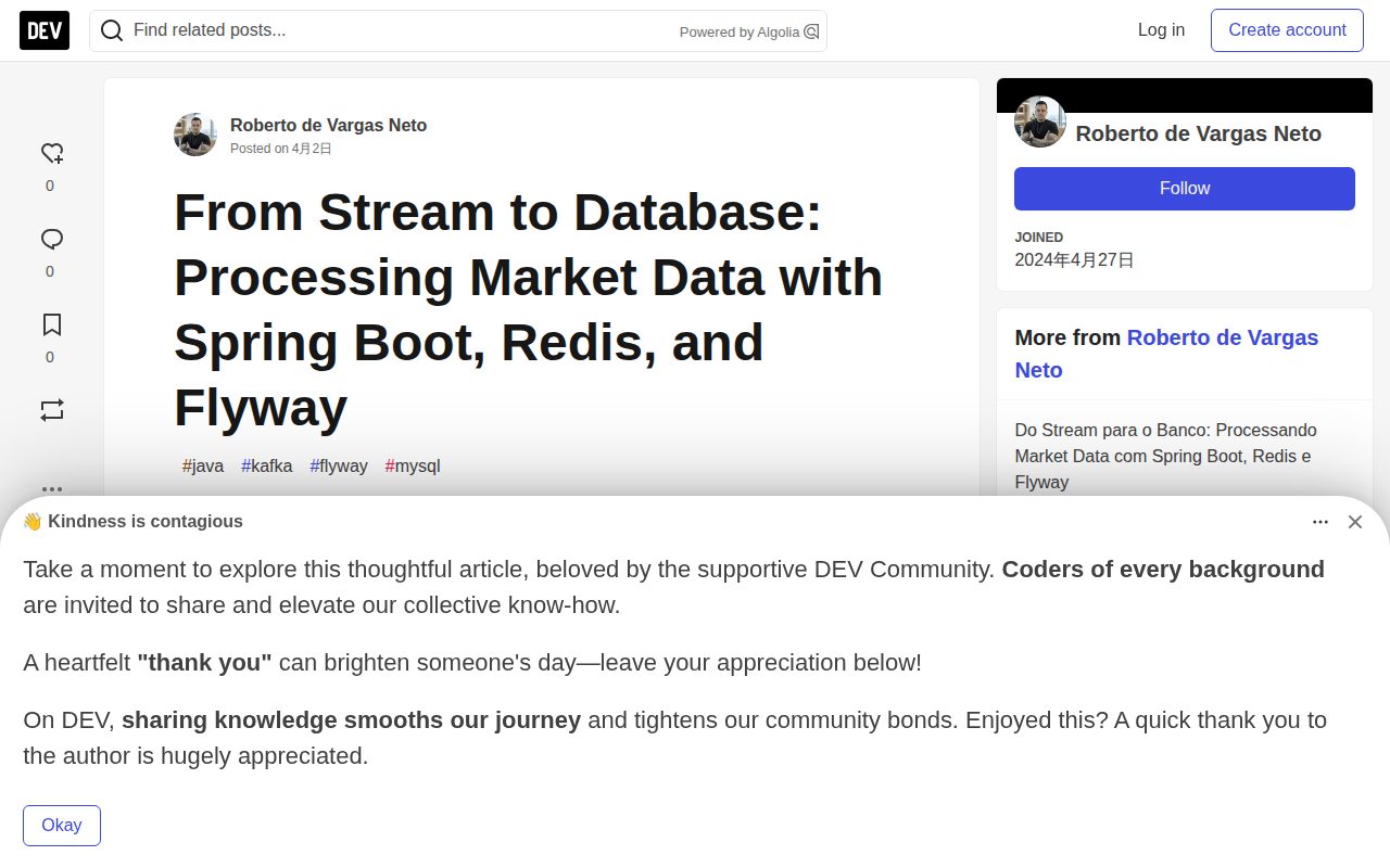 From Stream to Database: Processing Market Data with Spring Boot, Redis, and Flyway - DEV Community - Saved screenshot