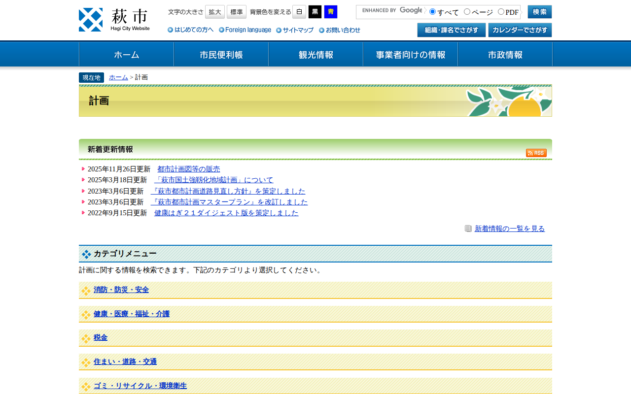 計画 - 萩市ホームページ - Saved screenshot