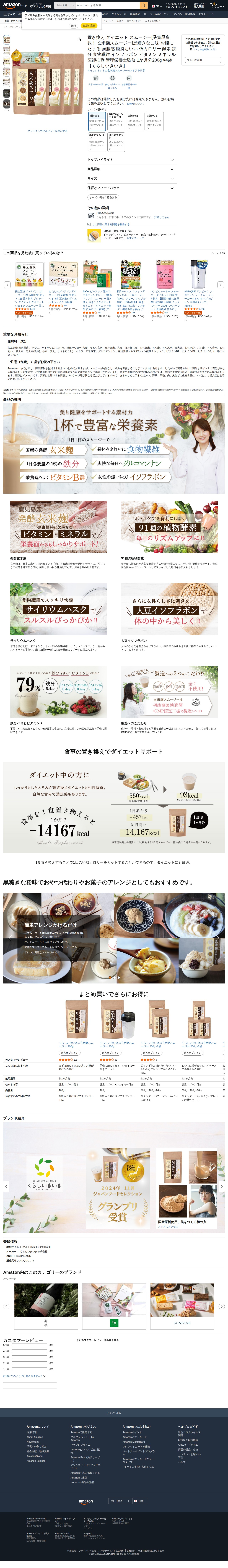![Amazon.co.jp: 置き換え ダイエット スムージー[受賞歴多数! 玄米麴スムージー]黒糖きなこ味 お腹にたまる 満腹感 腹持ちいい 低カロリー 酵素 鉄分 食物繊維 イソフラボン ビタミン ミネラル 医師推奨 管理栄養士監修 1か月分200g ×4袋【くらしいきいき】 : ドラッグストア - Saved screenshot](https://pub-f6fa8ca7bebe4069bff3224f9a8f5334.r2.dev