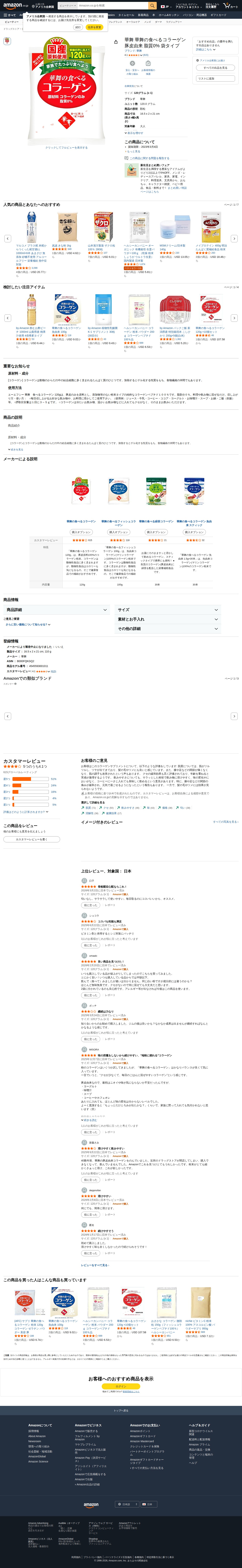 Amazon.co.jp: 華舞 華舞の食べるコラーゲン 豚皮由来 脂質0% 袋タイプ : ドラッグストア - Saved screenshot