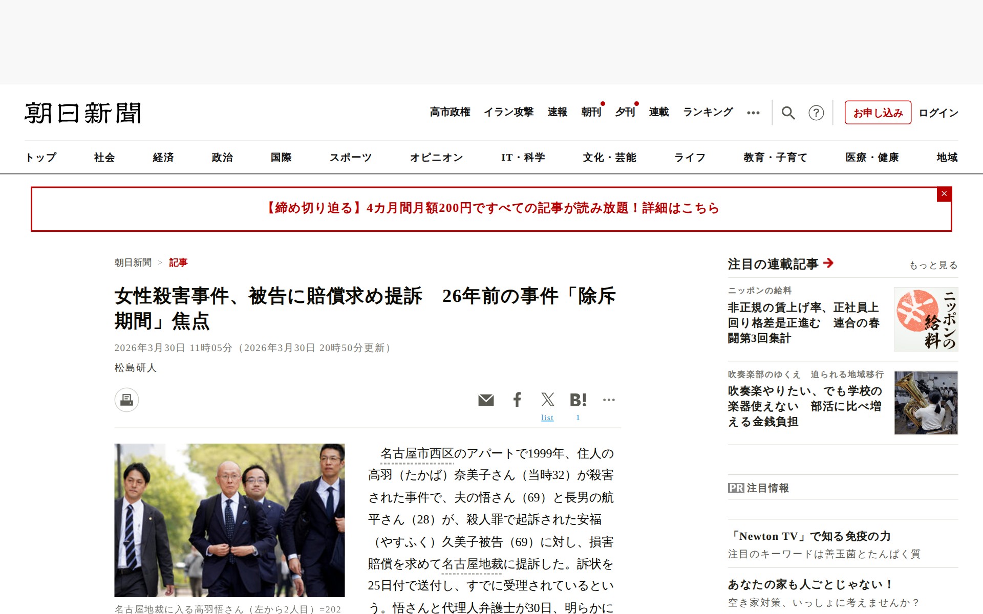 ![女性殺害事件、被告に賠償求め提訴 26年前の事件「除斥期間」焦点 [愛知県]:朝日新聞 - Saved screenshot](https://pub-f6fa8ca7bebe4069bff3224f9a8f5334.r2.dev