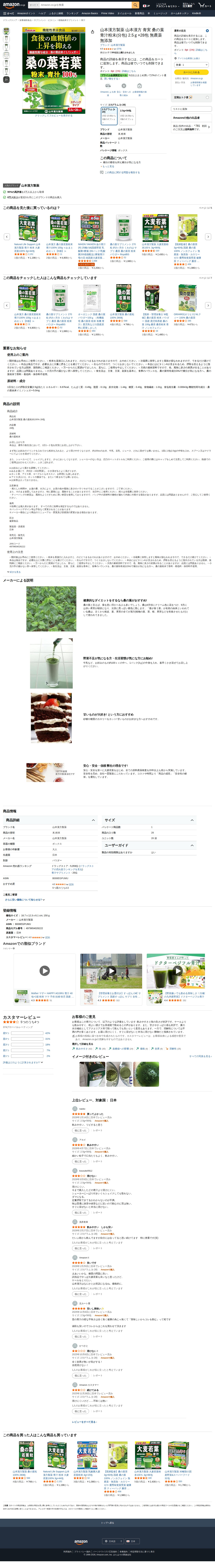 Amazon | 山本漢方製薬 山本漢方 青実 桑の葉青汁粉末(分包) 2.5g×28包 無農薬 無添加 | 山本漢方製薬 | 青汁 - Saved screenshot