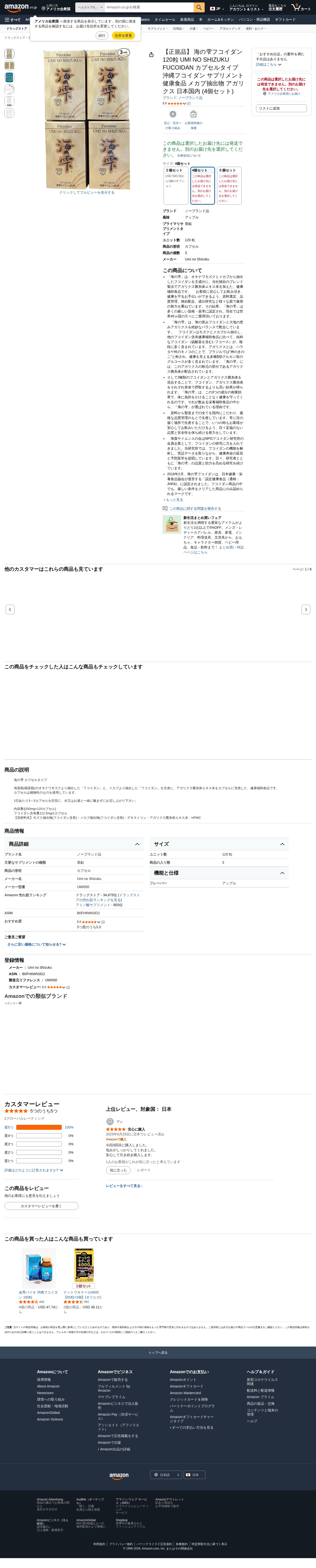 Amazon | 【正規品】 海の雫フコイダン 120粒 UMI NO SHIZUKU FUCOIDAN カプセルタイプ 沖縄フコイダン サプリメント 健康食品 メカブ抽出物 アガリクス 日本国内 (4個セット) | ノーブランド品 | アミノ酸 - Saved screenshot
